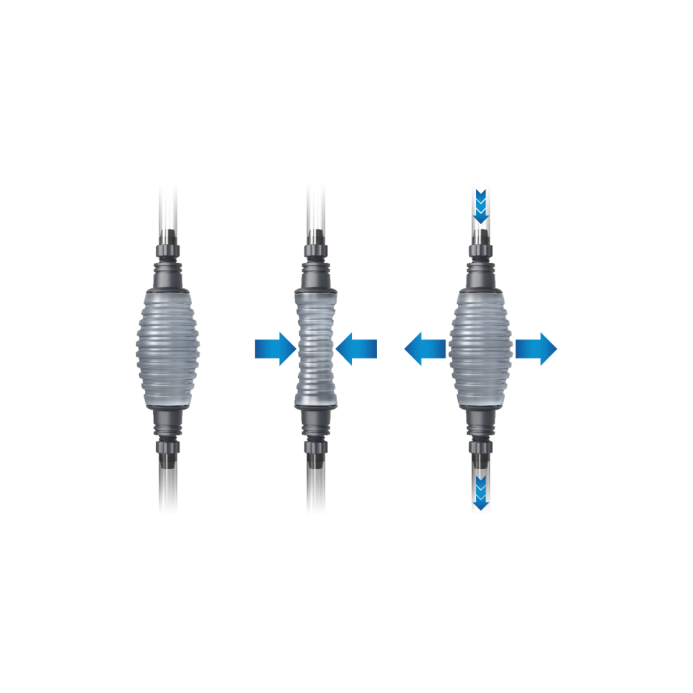 The Easystart system activates the flow of water with a simple squeeze of the pump and the dirt is transported without inconvenient suction into the bucket.